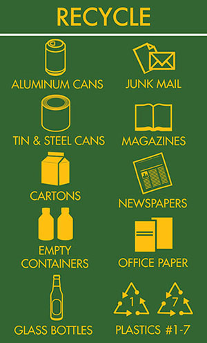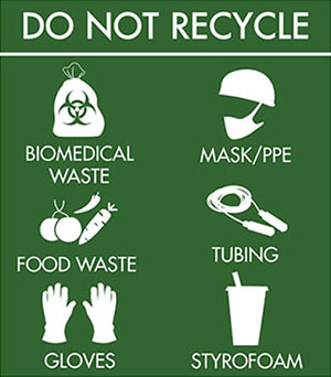 녹색 재활용 쓰레기통은 병원 곳곳에 편리하게 위치해 있습니다. 쓰레기를 버리기 전에 올바른 쓰레기통에 넣었는지 확인하세요. 우리는 함께 폐기물을 줄이고 배출량을 상쇄하며 환경을 보호할 수 있습니다.